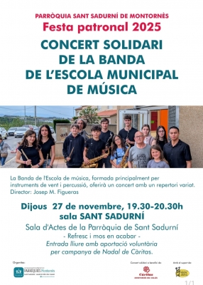 El dijous 27 de novembre, a les 19.30 h, la banda de l'Escola Municipal de Música, Dansa i Aula de Teatre de Montornès oferirà un concert a la sala d'actes de la Parròquia de Sant Sadurní. El conjunt està format principalment per instruments de vent i percussió.